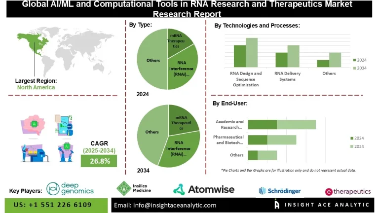 InsightAce Analytic Pvt. Ltd. announces the release of a market assessment report on the “Global AI/ML and Computational Tools in RNA Research and Therapeutics Market Size, Share & Trends Analysis Report By Technologies and Processes (RNA Design and Sequence Optimization, RNA Delivery Systems, RNA Sequencing and Data Analysis, Target Identification and Validation, Preclinical and Clinical Development Tools, Hardware and Infrastructure Support), Product (Vaccines, Drugs), Type (mRNA Therapeutics, RNA Interference (RNAi) Therapeutics, Antisense Oligonucleotide (ASO) Therapeutics, Other Therapeutics), End-User (Pharmaceutical and Biotech Companies, Academic and Research Institutions, Contract Research Organizations (CROs), Healthcare Providers (Emerging))- Market Outlook And Industry Analysis 2034″